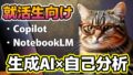 本記事では、初心者でも安心して選べるように Copilot・ChatGPT・Gemini・NotebookLM・Adobe Firefly の5つに絞って、それぞれの特徴やおすすめの使い方をわかりやすく解説します。