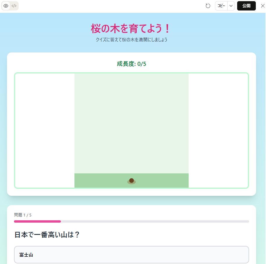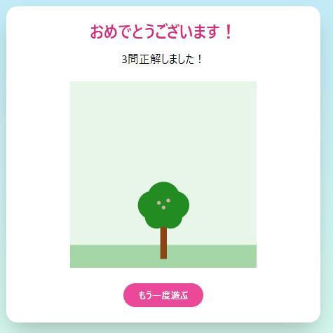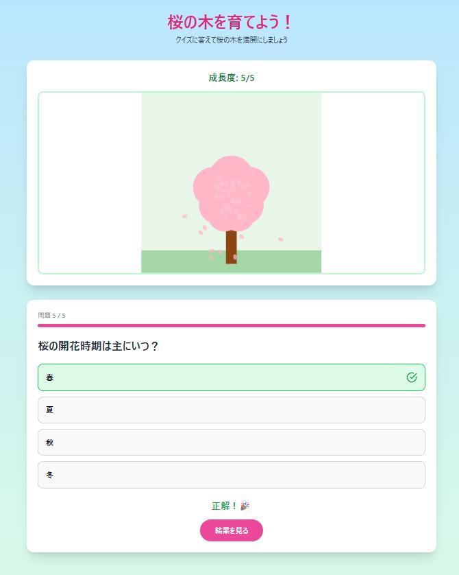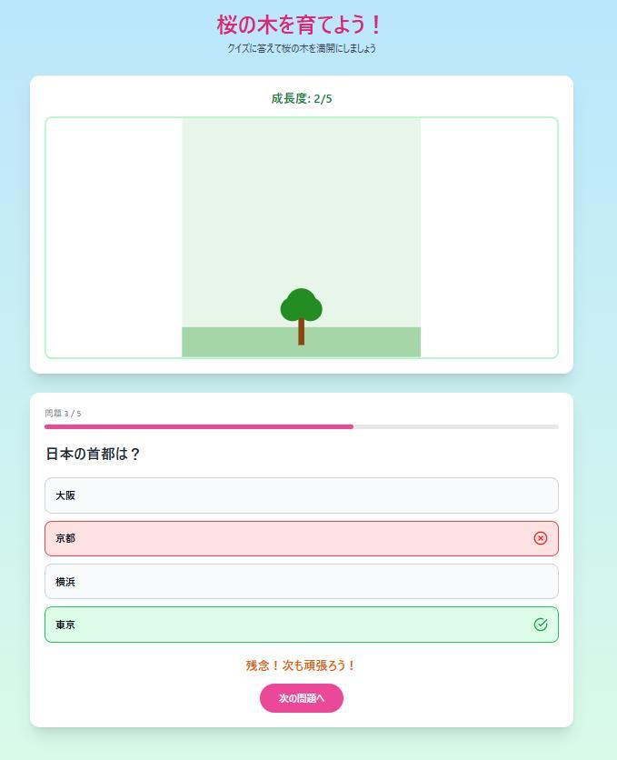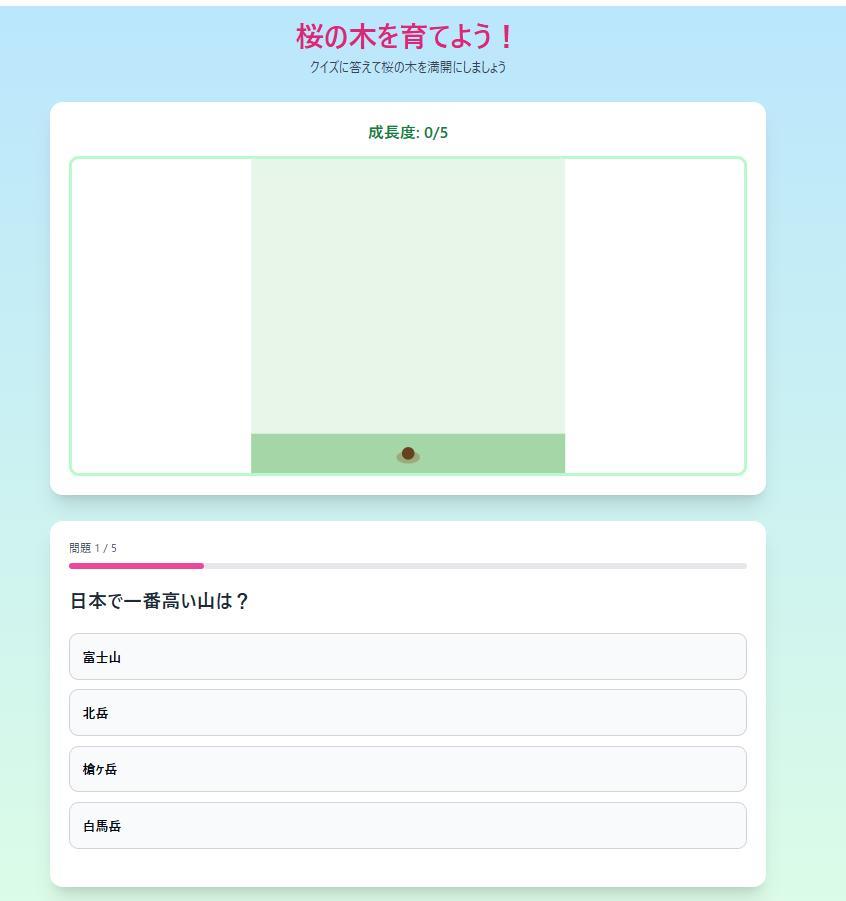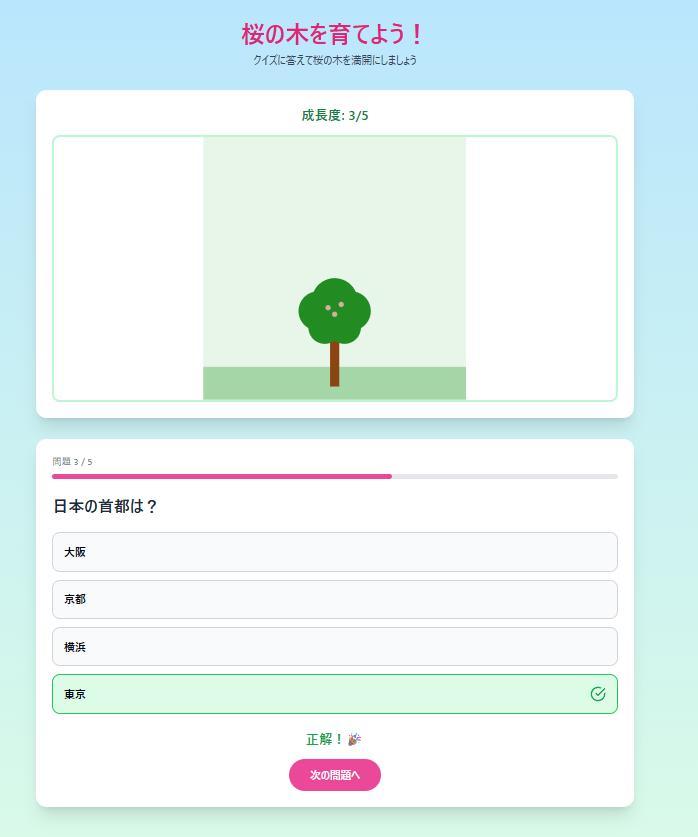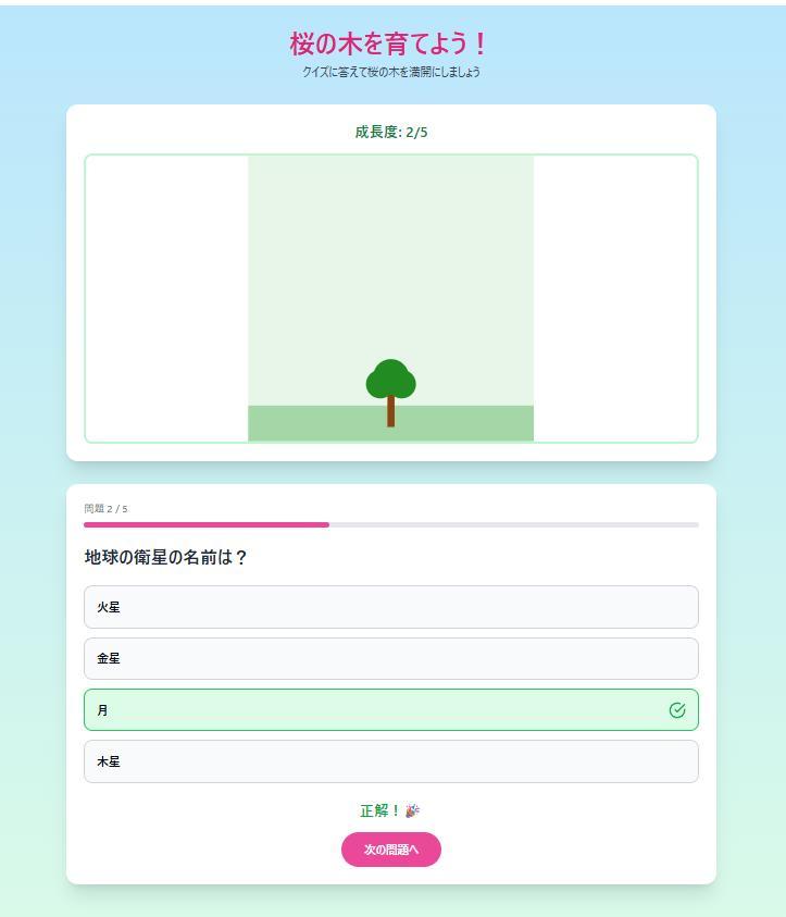 クイズに正解したら木が成長する仕組みにして、楽しく学びたいです!