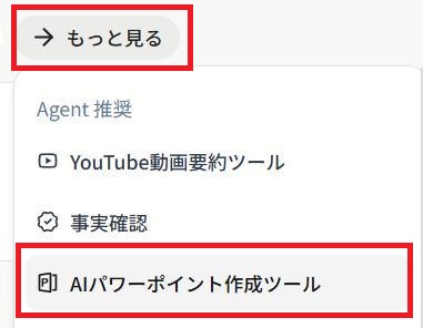 「もっと見る」>「AIパワーポイント作成ツール」の順に押すのじゃ!