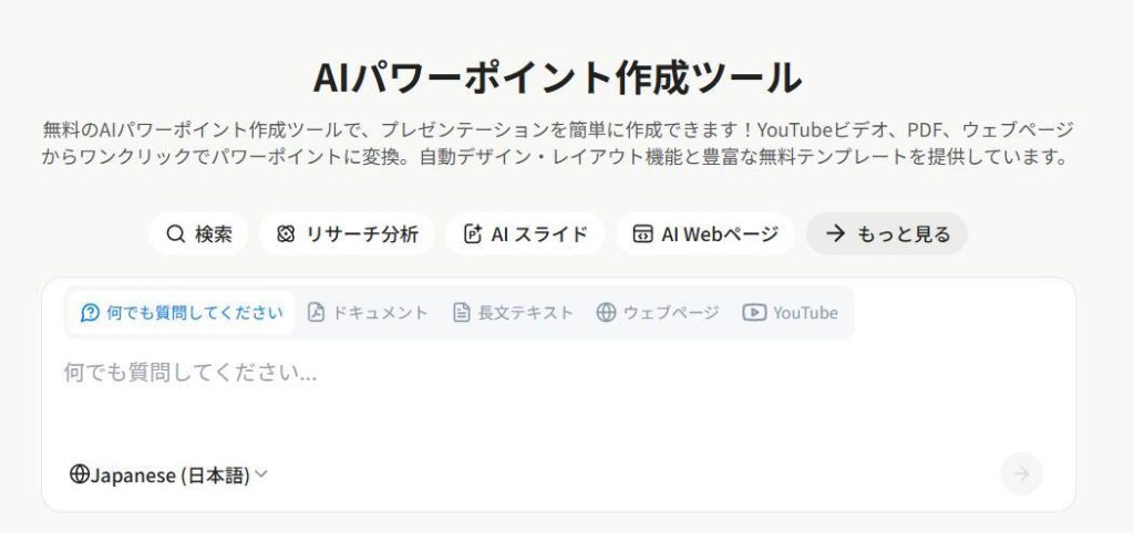「AIパワーポイント作成ツール」の画面が表示されました!