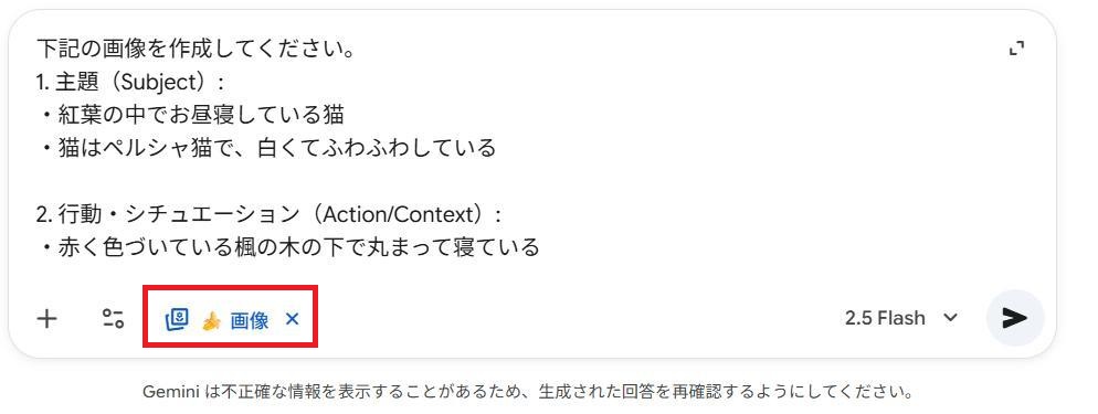 後は、先ほどの項目に対して作りたい画像の特徴を追記すればOKじゃ!