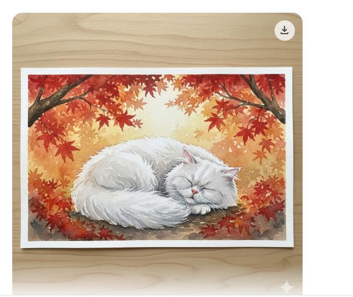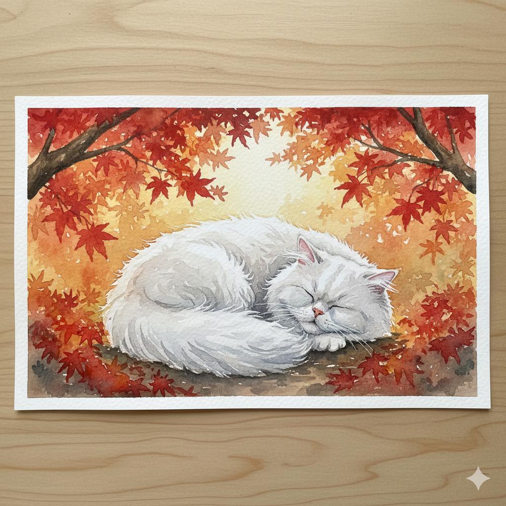 Google Geminiで画像を作成:紅葉とお昼寝する猫ちゃん