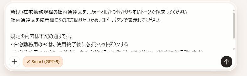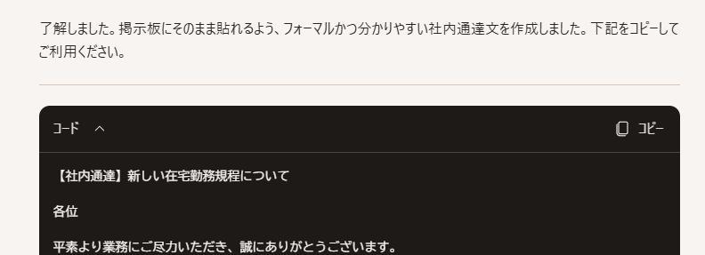 この記事では、総務業務でよくある「在宅勤務規程の通知文」を例に、実際に使えるプロンプトと生成結果をご紹介します。