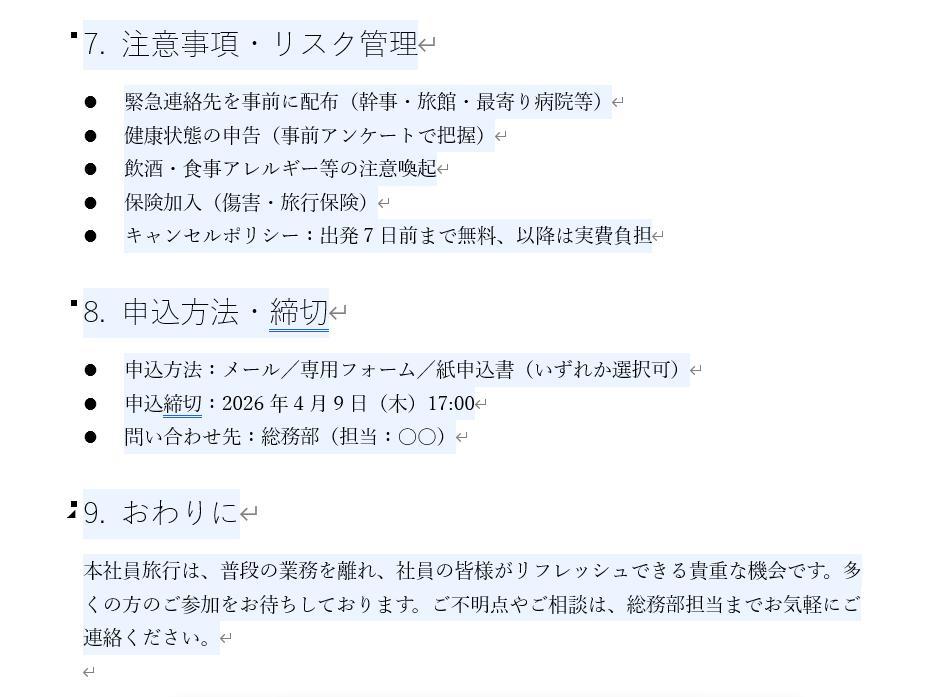 前回の続き:Word×Copilot活用 社員旅行の企画書作成